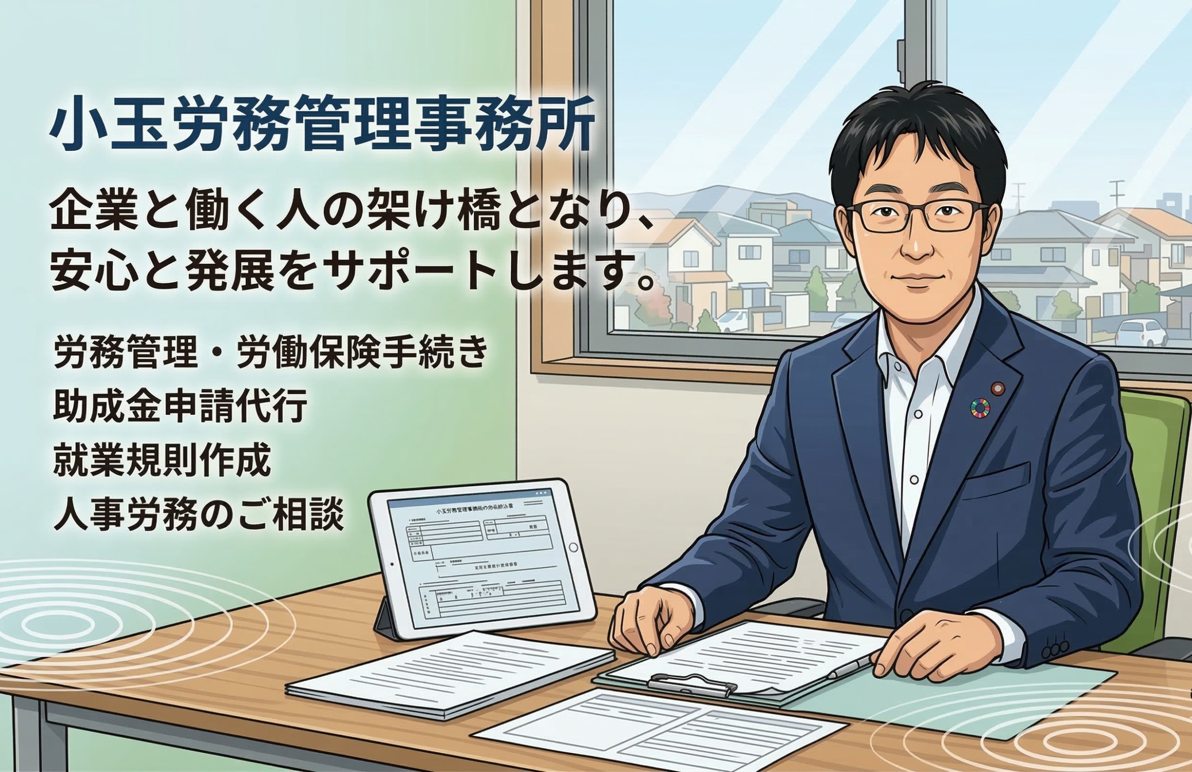 | 所属社会保険労務士 | ・小玉 高史(所長) ・小玉 佑子(副所長) |